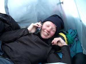 Fiona Adler from Thuraya Recharge uses her Thuraya phone during a mountaineering expedition. The people at Thuraya Recharge know what it's like to rely on your satellite phone.